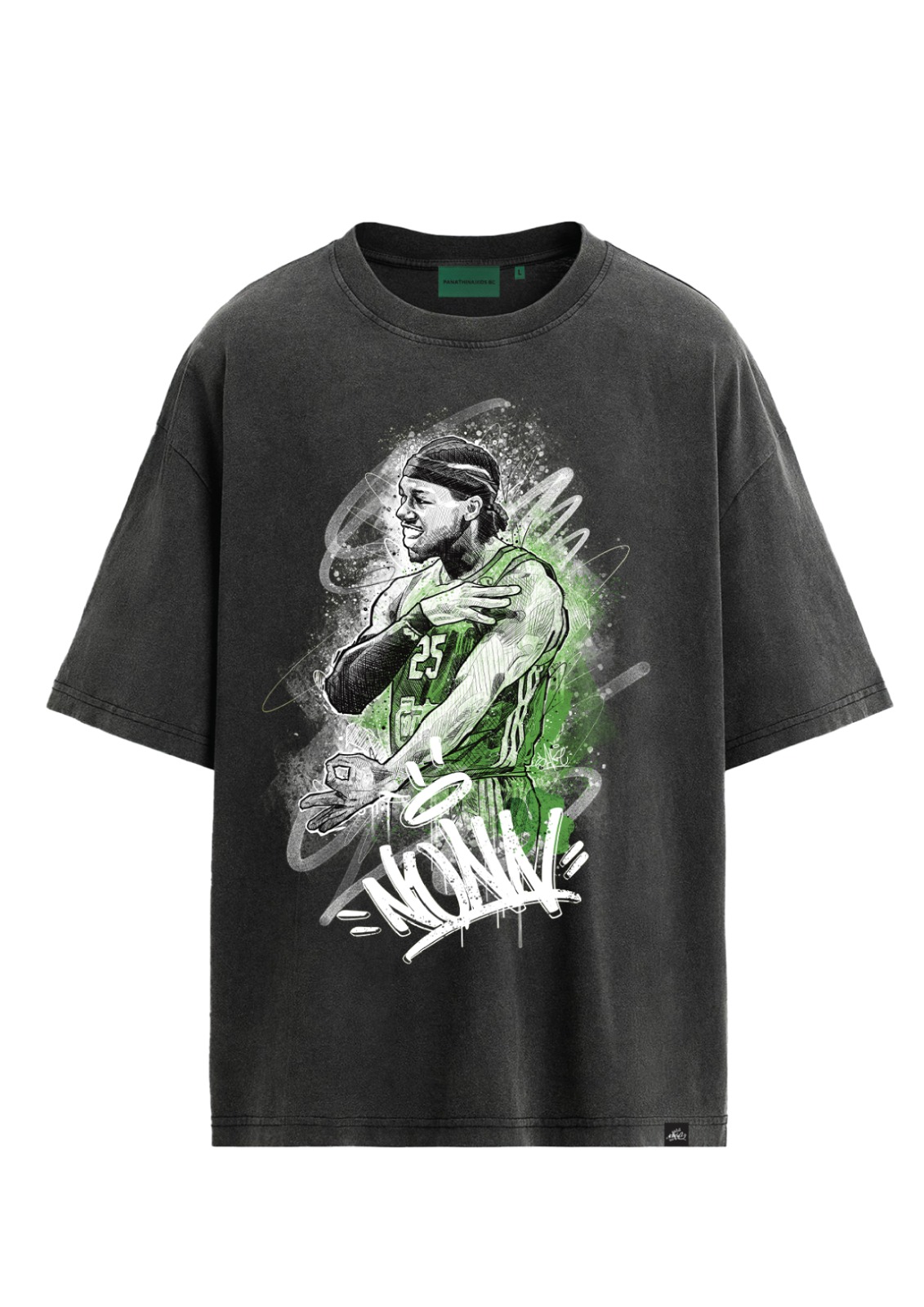 Αυτό το αποκλειστικό κομμάτι παρουσιάζει μοναδικά flash artworks του Παναθηναϊκού, εμπνευσμένα από την τέχνη και την τεράστια κληρονομιά του Sake — ενός από τους πιο επιδραστικούς tattoo artists στην Ελλάδα και ιδρυτή του Sake Tattoo Crew. Ο συνδυασμός της oversized γραμμής με τα εμβληματικά σχέδια που τιμούν τον σύλλογο, δημιουργεί ένα ρούχο που ενώνει την αισθητική του tattoo με την ιστορία του Παναθηναϊκού.