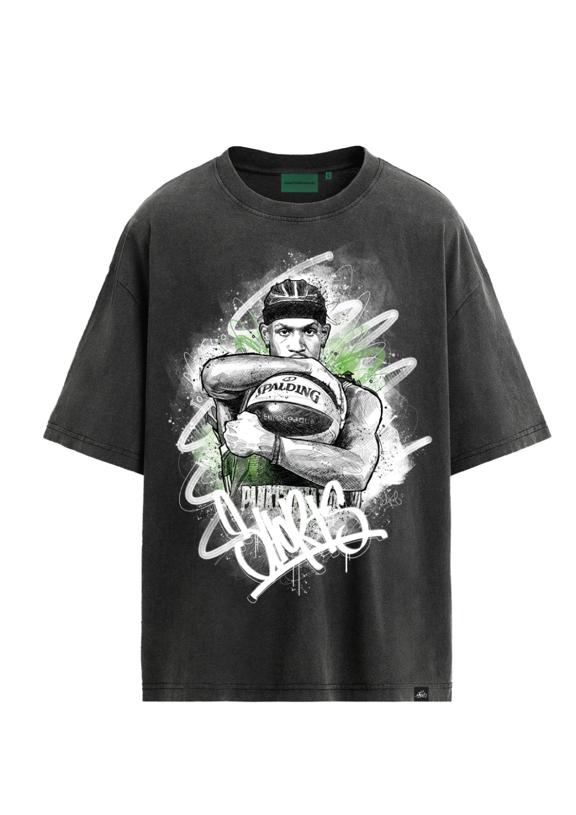 Αυτό το αποκλειστικό κομμάτι παρουσιάζει μοναδικά flash artworks του Παναθηναϊκού, εμπνευσμένα από την τέχνη και την τεράστια κληρονομιά του Sake — ενός από τους πιο επιδραστικούς tattoo artists στην Ελλάδα και ιδρυτή του Sake Tattoo Crew. Ο συνδυασμός της oversized γραμμής με τα εμβληματικά σχέδια που τιμούν τον σύλλογο, δημιουργεί ένα ρούχο που ενώνει την αισθητική του tattoo με την ιστορία του Παναθηναϊκού.
