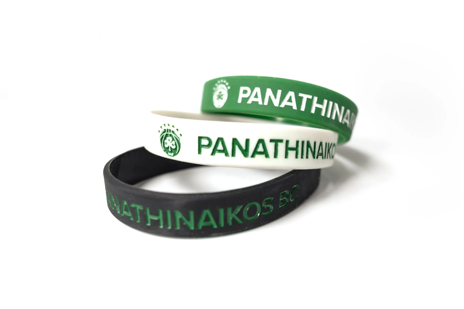 Ανθεκτικό βραχιολάκι σιλικόνης με το έμβλημα του Παναθηναϊκού και το έτος ίδρυσης, διαθέσιμο σε μαύρο, πράσινο ή λευκό χρώμα. Το ιδανικό καθημερινό αξεσουάρ για κάθε φίλαθλο, σχεδιασμένο για άνετη εφαρμογή και μεγάλη αντοχή